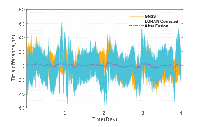 研究团队在算法设计上与以往导航和定时领域的研究大不相同。传统研究多聚焦于单个导航系统的优化或多系统的简单组合,而此次科研团队深入剖析了北斗系统(BD)和远程导航系统(罗兰,LORAN)的特性与短板。首先,创新性地针对罗兰定时数据研发出校正算法。该算法有效克服了罗兰定时信号波动大、精度低的问题,将罗兰数据的标准差由56.9ns降低到13.9ns,如图1所示。通过这一改进,融合系统能够更好地利用罗兰信号,避免了早期研究中因罗兰信号缺陷而被忽视的情况,显著提升了整个系统在复杂环境中的可靠性。在此基础上,科研团队进一步开发了基于扩展卡尔曼滤波器的自适应北斗与罗兰融合定时算法。该算法通过自适应调整系统噪声协方差,有效抑制噪声干扰对融合定时精度的影响,确保系统在复杂多变的环境下保持高精度的定时性能,结果如图2所示,罗兰校正前与北斗融合标准差为5.6ns,罗兰校正后与北斗融合标准差降到2.3ns。