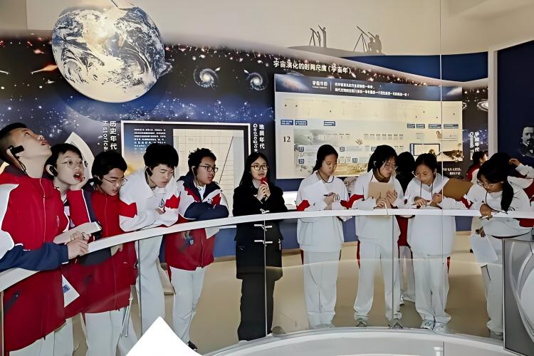 活动伊始,同学们率先参观了国家授时中心时间科学馆,在“感知时间”展区,傅科摆的缓慢摆动直观展现着地球自转的轨迹,让抽象的地理知识变得可触可感;“计时技术演进”展区内,西汉落下闳发明的浑仪与现代铯原子钟隔空相望,从古代青铜仪器定节气,到现代原子钟精准定秒长,两千多年的时光跨越,生动呈现了人类探索时间、精准计时的智慧迭代。