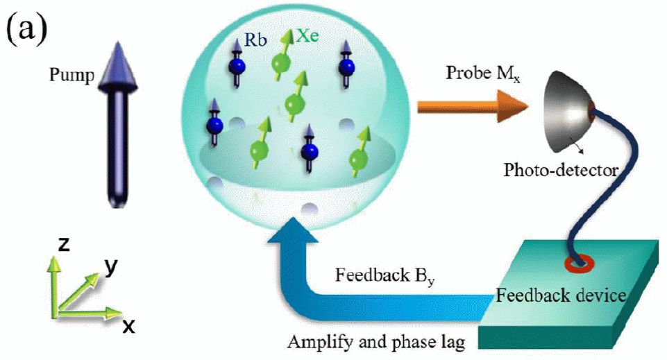 研究人员通过实验发现,在Rb-Xe混合原子自旋振荡器中,当自旋-反馈磁场相互作用强度超过自旋-静磁场相互作用强度时,将出现一种全新的振荡信号,该信号频率与原有自旋Larmor振荡频率完全无关,其初始相位完全随机,且具有很好的抗干扰性,持续时间达小时量级,符合时间晶体的定义。