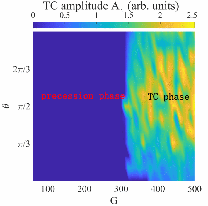 图2. 时间晶体信号与反馈磁场幅度、相位参数的关系。