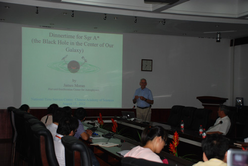 2012年8月17日上午,应中国科学院精密导航定位与定时技术重点实验室的邀请,美国国家科学院院士、哈佛大学天文系James M. Moran教授来国家授时中心进行学术交流,并作了题为“VLBI技术进展及新科学应用”的学术报告。国家授时中心学术委员会主任李志刚研究员及相关领域的科研人员、研究生等参加了报告会,重点实验室副主任杨旭海研究员主持了会议。