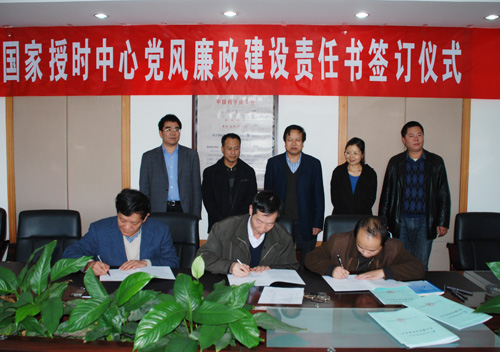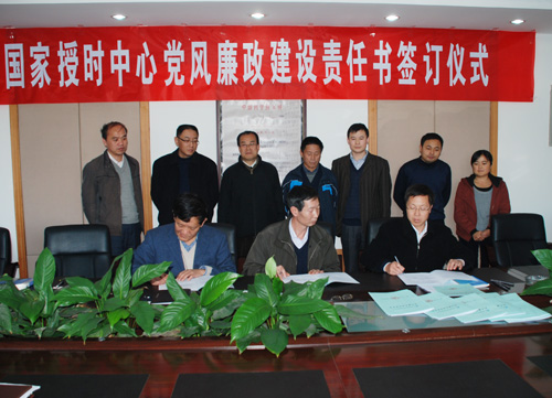 2010年11月8日,国家授时中心举行了党风廉政建设责任书签订仪式。中心领导班子成员、党委委员、纪委委员、研究室主任、职能部门正副处长、中心投资控股企业负责人、党支部书记等30余人参加了签字仪式,签字仪式由党委书记王玉林主持。