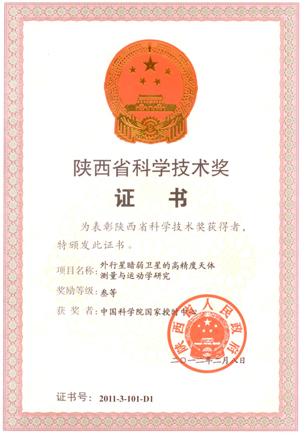 日前,陕西省对全省2011年科学技术奖获奖项目进行了表彰奖励,国家授时中心乔荣川研究员负责的课题组与上海天文台合作完成的《外行星暗弱卫星的高精度天体测量与运动学研究》项目,获得2011年度陕西省科学技术奖三等奖。