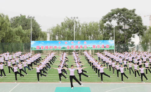 今年是毛泽东发表“发展体育运动,增强人民体质”号召60周年。为进一步贯彻《全民健身条例》,推动全民健身运动的深入开展,6月8日上午,国家授时中心塑胶运动场上,200余名在岗职工共同展示第九套广播操,喜迎中国科学院“全民健身日”的到来。