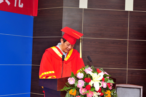 接着,郭际宣读了毕业生名单并与导师们一起为毕业生颁发了毕业证书。随后,毕业生代表陈江同学作了毕业感言,言语间真切表达了对国家授时中心的眷恋和感恩情怀。导师代表胡永辉研究员对毕业生们提了几点建议,并希望同学们在以后的工作、学习中更上一层楼。接下来,郭际主任向典礼致词,表达了对2012届毕业生的浓浓祝福和殷切期望,并欢迎同学们将来常回家看看。最后,陈江同学带领全体毕业生向中心领导和导师们献上了鲜花,表达他们最衷心的感谢。