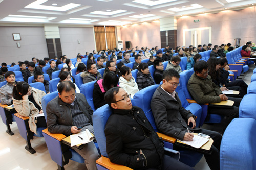 岳东峰在报告中,主要从“深刻理解和把握党的十八大报告的历史地位和主要意义、大会的鲜明主题、过去十年工作总结、科学发展观的新定位和新要求、如何理解坚定不移的走中国特色社会主义道路、全面建成小康社会目标的新要求、全面建成小康社会新的战略部署、全面提高党的建设科学化水平”等八个方面对党的十八大报告精神进行了深入辅导。岳教授的报告重点突出、非常生动。