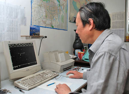 刘次沅研究员正在用现代天文学方法对天象记录进行校验