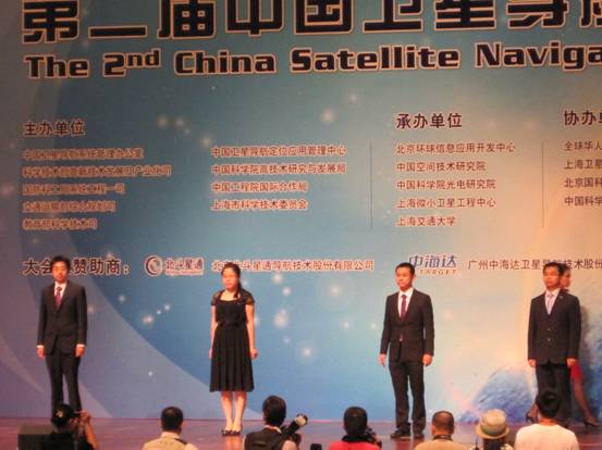 国家授时中心博士生杜志静(左二)获第二届中国卫星导航学术年会青年优秀论文奖