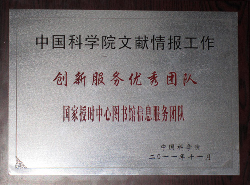 11月16日,在中国科学院第六次文献情报工作会议上,国家授时中心图书馆信息服务团队获“中科院创新服务优秀团队奖”。