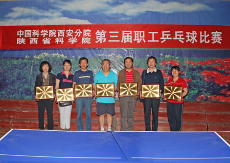 2009年4月28日上午,“中国科学院西安分院和陕西省科学院第三届职工乒乓球赛”在国家授时中心职工活动中心拉开了序幕。此次乒乓球赛由西安分省院工会的组织,国家授时中心工会精心筹办,活动得到了中心领导的大力支持,分省院系统共九个单位近百名运动员和工作人员参加了赛事。西安分省院党组书记周杰同志亲临赛场并致贺词,国家授时中心党委书记王玉林同志代表中心对各单位运动员表示热烈欢迎。