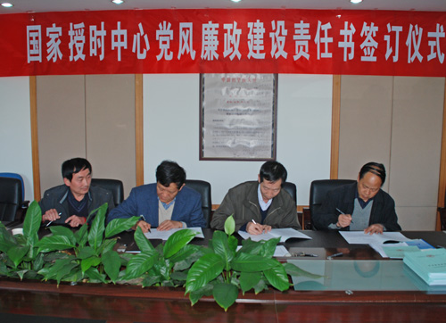 2010年11月8日,国家授时中心举行了党风廉政建设责任书签订仪式。中心领导班子成员、党委委员、纪委委员、研究室主任、职能部门正副处长、中心投资控股企业负责人、党支部书记等30余人参加了签字仪式,签字仪式由党委书记王玉林主持。