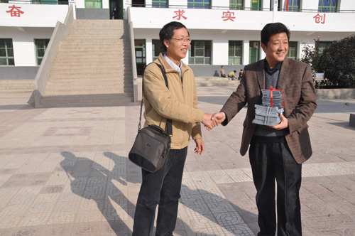 最后,国家授时中心科技财务党支部书记赵海成代表支部向南刘村小学,赠送了由国家授时中心窦忠编著出版的《教你认星星》科普书籍和科普光盘。
