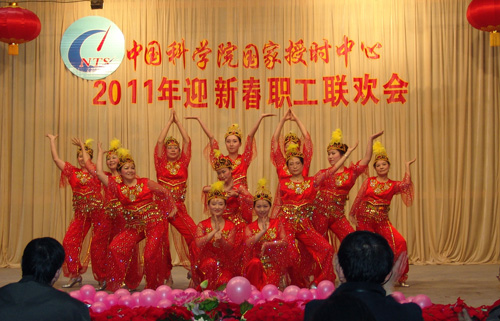 1月22日下午,在国家授时中心北院职工活动中心灯火辉煌、五彩缤纷,2011年春节联欢会在这里激情上演,联欢会气氛热烈,500余名职工家属欢聚一堂。