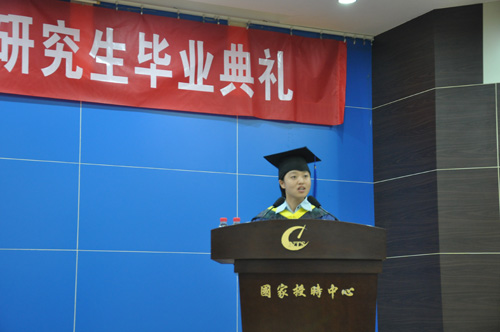 毕业典礼在雄壮的中华人民共和国国歌中拉开序幕。郭际首先代表中心领导,向即将走向工作岗位或继续深造的毕业生表示诚挚的祝贺,向辛勤培育同学们成长的老师表示衷心的感谢,并对同学们未来提出了“做人”、“进取”与“创新”的真切要求。同时,他还热诚希望大家能够“常回家看看”。随后,26名毕业生怀着喜悦的心情接过中心领导颁发的毕业证书。博士生导师胡永辉研究员代表导师们发言,表达了对2011届毕业生的浓浓祝福和殷切希望,并希望同学们能从未来的工作、生活中收获成功和快乐,成为国授时中心的骄傲。