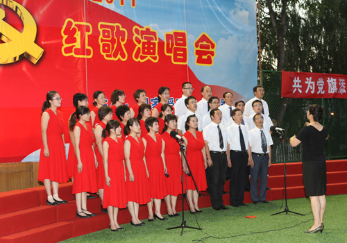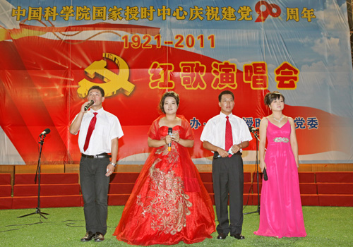 2011年6月23日下午,为庆祝建党90周年,国家授时中心在新建室外活动场隆重举行庆祝建党90周年红歌演唱会,中心党政领导和近400名干部职工参加了活动。