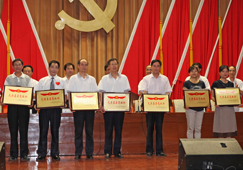 国家授时中心共有授时部党委、科技财务党支部、研究生党支部三个基层党组织,王民乐、卢晓春、乔治元、孟芳、徐庚华五名优秀共产党员,王黎等两名优秀党务工作者受西安分院党组表彰。