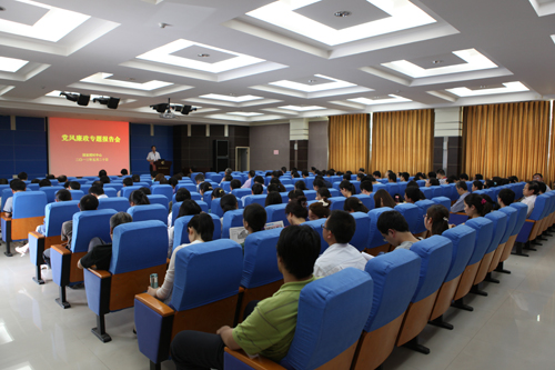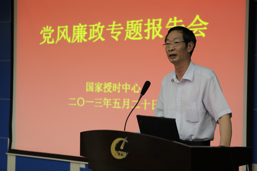 为加强中心党风廉政建设,深入推进廉洁从业风险防控工作,5月20日下午,国家授时中心在综合楼学术报告厅召开2013年党风廉政建设宣传月专题报告会。中心主任郭际、党委书记王玉林、纪委书记兼副主任窦忠、副主任卢晓春以及在岗职工140余人参加了大会。
