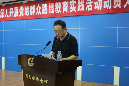 蒋协助在代表中科院第五督导组讲话中,充分肯定了中心党委的前期工作,并对此次党的群众路线教育实践活动的主题、目标任务、总体要求、活动重点、主要方法、主要对象以及重要步骤说明。他强调,国家授时中心制定了切实可行的实施方案,中心全体党员干部要严格按照中科院党组的要求,在西安分院党组的领导和支持下,紧扣实施方案,按照习近平同志提出的“照镜子、正衣冠、洗洗澡、治治病”的活动总要求,以延安整风的精神深入进行自我剖析,开展批评与自我批评,开好民主生活会;要坚持开门搞活动,充分征求党外人士、离退休老同志和研究生的意见;要切实落实整改措施,边整边改,确保教育实践活动出成效。