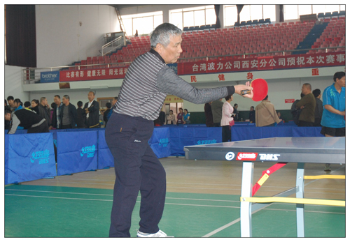赵海成处长在乒乓球比赛中