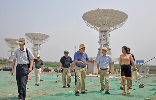 7月29日,中国科学院副院长张亚平一行在西安分院党组书记杨星科、副院长陈改学等陪同下到国家授时中心调研工作。在国家授时中心主任郭际等陪同下,调研组一行顾不上休息,中午1点顶着烈日就直奔国家授时中心国家重大专项西安试验场区现场考察。随后又赶往位于100多公里外的蒲城授时部进行实地调研。傍晚返回临潼本部后,又连续对国家授时中心时间频率基准实验室、量子频标研究室、CAPS测轨站和主控站等进行了考察调研,随后又召开了由中心党政领导班子成员及职能部门负责人和研究室主任参加的座谈会。