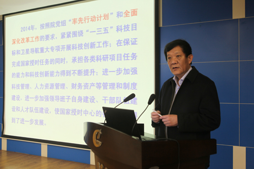 2月5日上午,中科院国家授时中心召开职工大会总结2014年度工作。中心党政领导班子成员,以及180余名在岗职工、研究生代表和离退休党支部委员参加了会议。会议由国家授时中心副主任卢晓春主持。