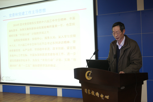 中心党委书记、副主任王玉林做了2014年度党委工作报告。从学习贯彻中央和院党组重要决策部署,凝聚实现“四个率先”的精神力量;巩固党的群众路线教育实践活动成果抓好作风建设各项工作的落实;基层党组织建设和党风廉政建设和反腐倡廉工作;创新文化建设工作和存在主要问题等方面进行了认真总结。王玉林最后强调,改革创新发展是研究所中心任务,出成果、出人才永远是立所之本。2015年是继续贯彻落实党的十八届三中全会精神、全面深化科技体制机制改革、事业单位改革、院组织实施“率先行动”计划和落实“十三五”科技战略规划关键的一年。中心党委和党的建设工作,将按照中央和上级党组2015年党建工作总体部署和要求,紧紧围绕我中心改革创新发展中心任务,着力抓好干部队伍建设、党的基层组织建设、党风廉政建设、创新文化建设等各项工作,发挥政治核心和监督保障作用。