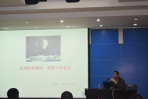 11月19日,在中心综合楼报告厅举办科研道德与学风建设专题报告。党委书记王玉林同志向科研人员及研究生作了题为“弘扬科学精神,自强才能自立”的报告。60位科研人员听取了报告。