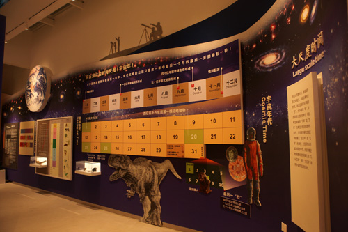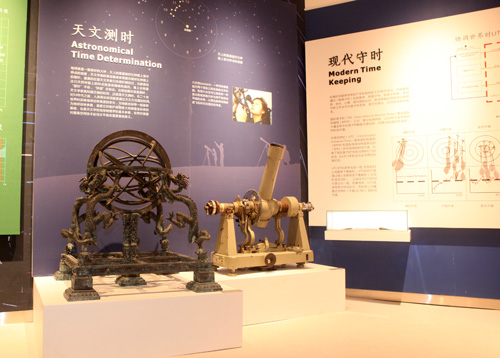 展馆进门处,习近平总书记“科技创新、科学普及是实现创新发展的两翼,要把科学普及放在与科技创新同等重要的位置。”十分醒目。一楼主要是时间科学展厅,既有实时校时的电波钟表墙,也有摆长12米、摆锤重量120公斤的傅科摆,既有按古法仿制的我国古代天文计时仪器的巅峰之作——水运仪像台,也有全面展示当今世界上包括GPS、GLONASS、伽利略、北斗卫星导航系统、中国区域卫星导航系统(CAPS)的360°全息投影。为达到良好的科普效果,国家授时中心按照“贴近实际、贴近公众、贴近生活”的要求,设计了触摸时间、时间戳认证、高精度定位等互动环节。