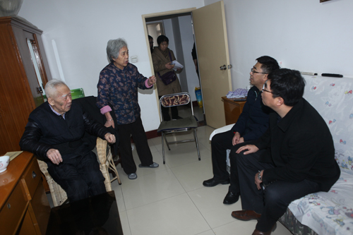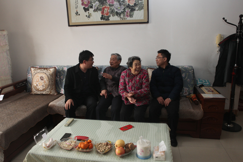 2017年1月24日,中科院国家授时中心主任张首刚、党委书记窦忠代表中心党政领导班子,在党委办公室、人事教育处、工会和离退办相关负责人陪同下,走访慰问了国家授时中心离休老干部、老干部遗属和老领导。走访中,张首刚、窦忠与老同志亲切交谈,仔细了解每一位老同志的生活情况和身体状况,为老同志送上节日慰问品、慰问金,向他们介绍了研究所在2016年科技创新发展重要工作进展和取得的成绩,并代表中心领导班子衷心感谢他们为单位发展所作出的贡献,希望他们在保重身体的同时,一如既往地关心和支持国家授时中心的发展。