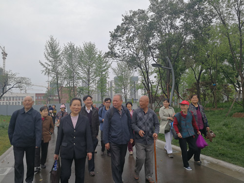 春雨初停,植物园里一片生机盎然,老同志们漫步其间,一边畅谈授时中心的创新发展和自己幸福的晚年生活,一边感受大自然的气息,纷纷在秀美的风景前驻足拍照。