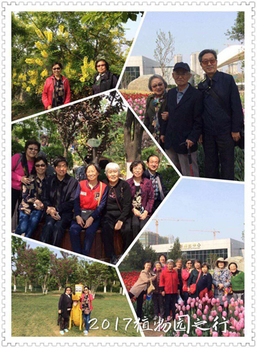 西安植物园位于西安曲江新区,此时正值“郁见春天”主题花展,园区内150余种、共计30余万株花卉竞相争艳。天公作美,阳光灿烂,使得花卉们都生动了起来,徜徉在花海中的老同志们纷纷感叹大自然的美丽,不约而同的拿出手机自拍或合影。由于居住地分散,许久不见的老同事老朋友们一见面就热情相拥,合照留念,拉拉家常聊聊近况,相聚的欢快心情溢于言表。