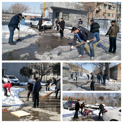 连续4天的降雪,特别是天气转晴后的低温天气,使园区主要路段结冰现象严重,为快速消除安全隐患,早上10点,接到扫雪通知的职工、研究生们,纷纷走出实验室和办公室,统一领取扫雪工具后和中心领导一起分片包干清理园区积雪。大家铲的铲、推的推、扫的扫,齐心协力,配合默契,经过一个多小时,将园区主要路段的积雪和结冰清扫干净。特别是授时部广大职工,更是克服了降雪量大,清扫面积广,路况复杂的困难,与驻授时部武警一同将园区主要路段的积雪和冰晶清理干净。