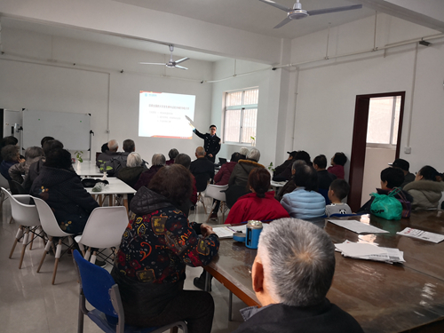 任宏首先向大家讲解了火灾发生的原因及预防常识,并通过真实案例向大家介绍了火灾发生的严重后果及安全疏散与逃生知识,以此来敲响消防安全的警钟。随后,他针对大多数老年人普遍存在的消防安全意识欠缺及自救能力不强等现实,着重讲解了家庭常见火灾比如油锅起火等处置措施、煤气泄漏、超负荷电源的使用等安全隐患的防范,以及火灾初期的扑救方法和火场逃生的办法,并对灭火器、防烟面罩、多功能手电筒等消防设备的使用进行了现场演示。