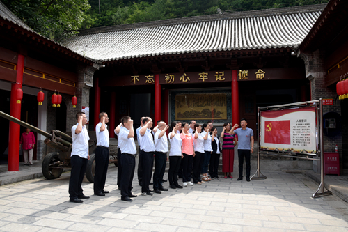 6月26日,中国科学院国家授时中心财资人事党支部和中行临潼区支行党总支共18名党员一起到蓝田县葛牌镇“鄂豫陕苏维埃政府纪念馆”,联合举行了“不忘初心、牢记使命”主题党日活动。活动通过踏寻红色遗迹、缅怀革命先烈、重温入党誓词,引导党员“不忘初心,牢记使命”,支部8名党员参加了本次活动。