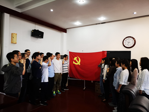 党支部在会上还组织全体党员在党旗前面重温入党誓词。誓词虽短,意义不浅。当这短短的80字从每一位党员的口中被庄严地读出时,党的纲领和宗旨,党员的权利、义务、责任和为党和中国人民的伟大事业、为实现共产主义理想努力工作和奋斗终身的基本要求,再一次烙印至每位党员的心灵。