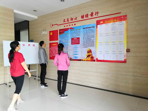 为加强主题教育的宣传工作,授时部机关党支部利用发播楼一楼大厅建立了以“不忘初心,继续前行”为主题的宣传栏,从实际工作出发,从授时人的角度解读了“不忘初心、牢记使命”这八个字。支部党员利用上下班时间,仔细阅读宣传内容,并围绕活动主题,结合实际工作,积极开展现场学习讨论。