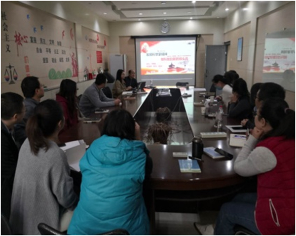 10月22日,中国科学院国家授时中心测量与定轨研究室党支部召开第四季度党员大会,邀请中心党委委员、副主任李孝辉作“发扬科学家精神,做科技创新的排头兵”党课报告,并集体学习了院夏季党组扩大会议精神、《习近平谈治国理政》第三卷部分内容。会议由党支部书记杨旭海主持。