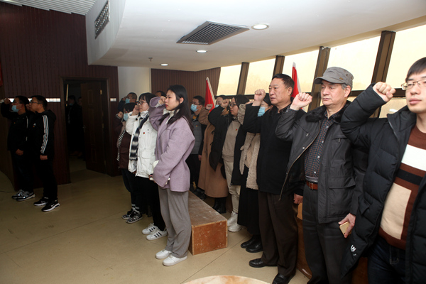 揭牌仪式上,党员们聆听了中科院副秘书长、直属机关党委常务副书记李和风讲话,共同见证基地揭牌。西安光机所所长马彩文还结合龚祖同先生入党志愿书,现场讲述了老一辈科学家一心向党,科技报国的感人故事,为党员们上了一堂短小生动的党课。最后与会全体党员在领誓人的带领下重温了入党誓词。