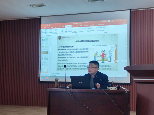 报告中,杨军首先介绍了民法典的历史背景、基本原则和重大意义,随后解读了旧法和新法的衔接以及新法的主要变化,并将法条适用、诉讼实务与真实案例相结合,向广大职工详细地介绍了《民法典》中与大家生活息息相关的居住权、婚姻家庭、民间借贷、高空抛物补偿追责等新的条文。杨军深入浅出、通俗易懂的讲解方式使枯燥繁杂的法律条文变得生动有趣,引起了大家的阵阵掌声。