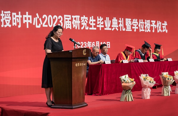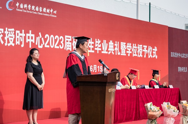 6月19日上午8时30分,中国科学院国家授时中心“骊歌未央·待续华章”2023届研究生毕业典礼暨学位授予仪式隆重举行。国家授时中心主任张首刚、学位评定委员会主席郭际、中心党委书记窦忠、中心副主任卢晓春、中心纪委书记李晋芳、毕业生导师代表、中心相关部门负责人、毕业生家长、学生会成员及2023届全体毕业生100余人齐聚一堂,共襄盛典。毕业典礼由所教育处处长张燕主持。23名硕士研究生和21名博士研究生将从这里奋楫扬帆,开启人生新征程。