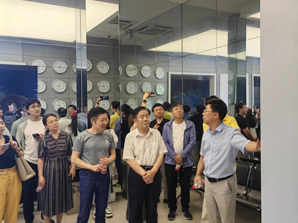 窦忠代表国家授时中心对来访的领导和师生表示热烈欢迎,陪同参观了科学时间馆,并对我中心的发展历程、科研进展和重大科研成果进行了全面、细致地介绍。王庭大表示,国家授时中心的发展成就和诸多成果给他留下了非常深刻的印象,时间科学馆的设计和展陈也让他感到非常震撼,学院的师生也对时间频率学科和时间科学馆产生了浓厚的兴趣。