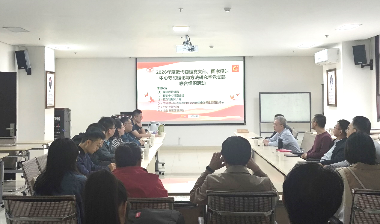 为深入学习贯彻习近平新时代中国特色社会主义思想,弘扬西迁精神,推动党建与科研深度融合,4月15日,中国科学院国家授时中心守时理论与方法研究室党支部赴西安交通大学,与交大物理学院近代物理所党支部联合开展“传承西迁精神,勇担科研使命”共建主题党日活动。