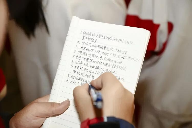 随后,一场生动的互动讲座进一步深化了同学们的认知。科研人员结合具体案例,详细解读了“北京时间”的由来——这款家喻户晓的标准时间,并非源自北京,而是由位于西安的中国科学院国家授时中心产生、发播,这一知识点让不少同学倍感意外,也让大家对时间背后的科学支撑与地理渊源有了更清晰的理解。讲座过程中,同学们聚精会神、踊跃提问,与科研人员深入交流时间测量、信号发播等相关知识,现场学习氛围十分浓厚。