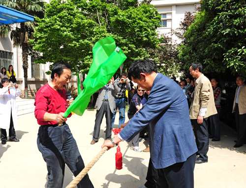 4月30日下午,阳光明媚,春色宜人,为丰富职工文体生活,国家授时中心工会组织职工迎“五一”拔河比赛。活动以党支部为单位,共有八个党支部的128名队员参加。中心主任郭际、党委书记王玉林、副主任吴海涛等中心领导、各研究室主任和科研骨干亦纷纷摩拳擦掌积极参与。