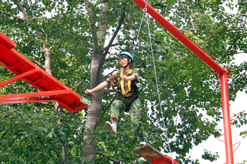 入营式将同行的14人紧密地团结在一起,组建起培训团队,营造团队氛围。三个高空项目要求队员必须挑战自我,克服心理恐惧,独立或与队员合作完成。教练的“你没有退路,只能前进”鼓舞着每一个人,大家最终战胜自我,在高空露出了胜利的微笑。“穿越电网(生死电网)”和“绝壁求生(成功墙)”是团队项目,考验团队间是否能有效沟通及团队中角色的合理运用,使大家在合作中增强个人奉献与牺牲精神。不抛弃,不放弃,在所有队员都登上墙头的那一刻,大家振臂高呼,欢庆胜利!全队那种团结、不服输的精神感动了在场的每一个人。