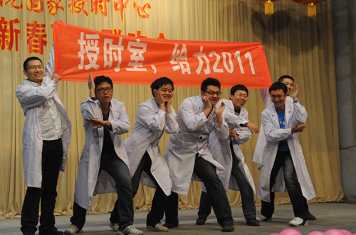 1月22日下午,在国家授时中心北院职工活动中心灯火辉煌、五彩缤纷,2011年春节联欢会在这里激情上演,联欢会气氛热烈,500余名职工家属欢聚一堂。