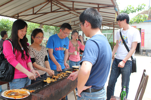 阳光有约,上午9点,青年职工和同学们40余人到达临潼芷阳湖银湖山庄,进行了一系列的休闲娱乐活动后,烧烤活动开始了,大家分工合作,互相帮助,不一会儿就见炊烟袅袅,香味弥漫,场面充满着欢乐的气氛。烧烤结束之后,全员自己动手,通力合作,将我们的“战场”收拾干净,保护自然环境。