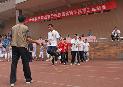 在纪念中国共产党成立90周年之际,5月28日,中国科学院西安分院、陕西省科学院职工运动会在西安市八十三中运动场举行,来自分省院270余名运动员参赛,国家授时中心工会组织50余名运动员,参加了铅球、跳绳、毽子、100米跑、800米跑及领导干部托球跑等多个分组竞赛项目。