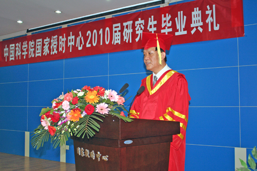 毕业典礼在庄严的国歌声中开始。刘次沅首先宣布了2010年毕业研究生名单,郭际主任、王玉林书记为毕业生颁发了毕业证书。随后,毕业生代表向国家授时中心赠送了纪念品。