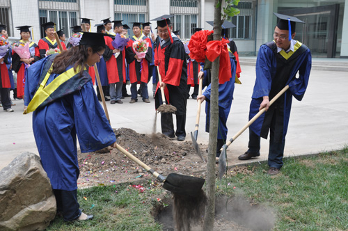 2011届毕业生在综合楼前栽下了毕业纪念树